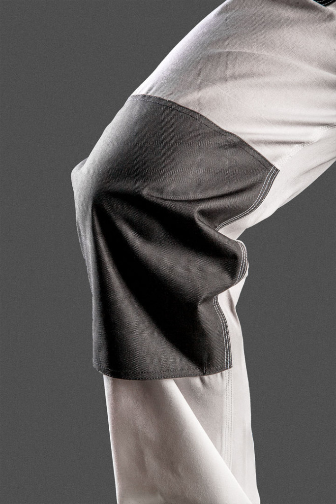 Munkanadrág, fehér, 35% pamut, 65% poliészter, 267 g/m², Oxford anyagú erősítések, erősített zsebek, tripla varrások, térdvédővel is használható, CE, EN ISO 13688:2013