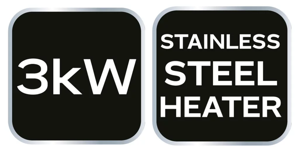 3 kW ipari elektromos fűtés, fűtőelem rozsdamentes acél, állítható termosztát, túlmelegedés elleni védelem, ventilátorral, szigetelt fogantyúval, légáram 291 m3/h