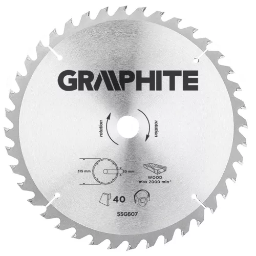 A GRAPHITE keményfém lapkás fűrésztárcsa a hőmérsékletnek és a deformálódásnak igen ellenálló MN65-ös mangán acélötvözetből készül. Az YG6A keményfém lapkás (vídiabetétes) fogazás lehetővé teszi a fa és fa alapú anyagok, mint pl. a rétegelt lemez, a forgácslap vagy az MDF lapok nagyoló vágását. A csomagolásban megtalálható szűkítő gyűrűk lehetővé teszik a fűrésztárcsák alkalmazását a fűrészgép típusok többségéhez.