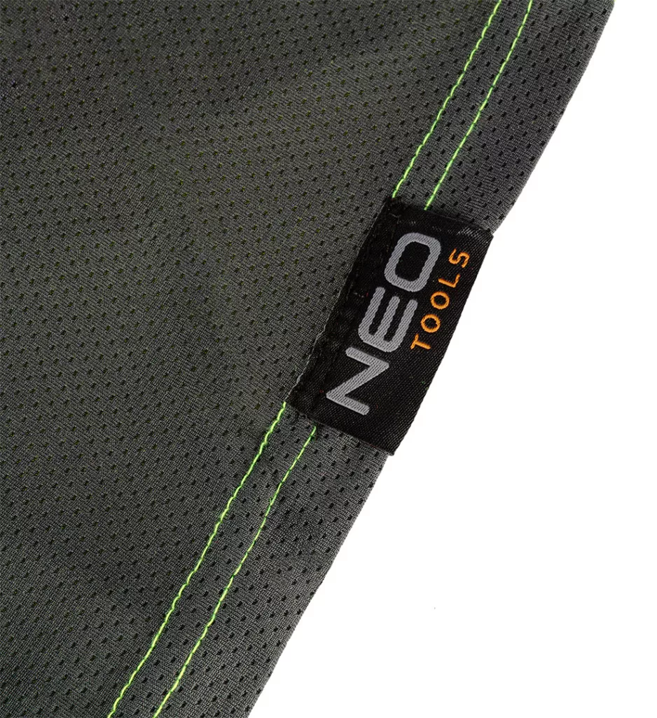 NEO láthatósági munkapóló kimagasló láthatóságot biztosít viselője számára ezáltal biztonságát növelő praktikus megoldás legyen az nappali világítási körülmények között, vagy sötétben, a gépjárművek lámpáinak fényében. A könnyű és szellős anyag alkalmazása növeli a felhasználó komfortját a hőség idején. Sötét anyagok lettek alkalmazva a szennyeződéseknek leginkább kitett helyeken. A termék EN ISO 13688:2013 szabvány szerinti kivitelezése és az európai tanúsítványa minőségének garanciája. Az európai biztonsági standardoknak való megfelelőséget a CE tanúsítvány biztosítja. A NEO márka a professzionális igényeket is kielégíti.