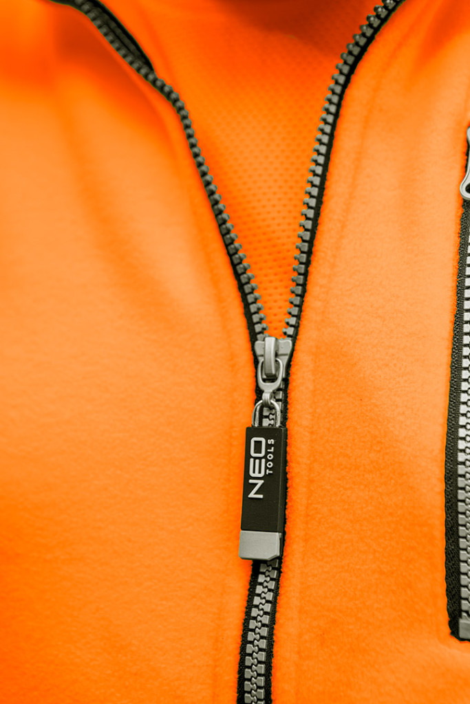 NEO láthatósági polár munkadzseki intenzív láthatóságú. A viselője biztonságát növelő praktikus megoldás, legyen szó nappali világítási körülményekről vagy sötétben, mesterséges világításnál, pl. a gépkocsik lámpáinak fényében. A 280g/m2 grammatúrájú könnyű, kényelmes és meleg polár biztosítja a használat maximális komfortját az alacsonyabb hőmérsékleteken. A dzseki3 nagyméretű cipzározható zsebbel rendelkezik. A termék EN ISO 13688:2013 szabvány szerinti kivitelezése és az európai tanúsítványa minőségének garanciája. Az európai biztonsági standardoknak való megfelelőséget a CE tanúsítvány biztosítja. A NEO márka a professzionális igényeket is kielégíti.