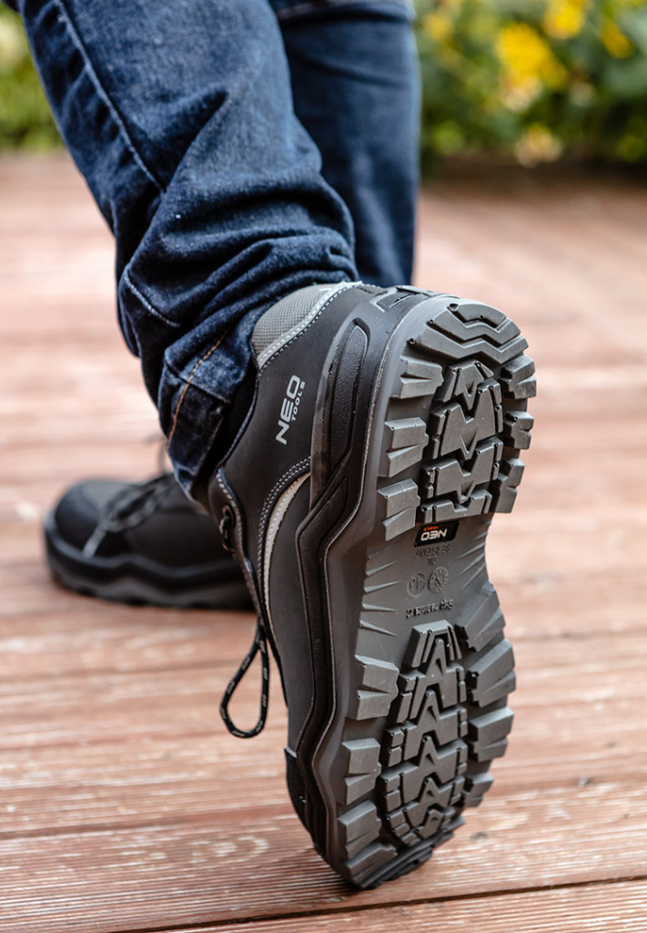 A Neo S3 nubuk bőr munkacipő védi a lábat a hideg és a vízzel való átázás ellen. Nagyon kényelmesek, nem tartalmaz fémelemeket ezért a fémdetektorok számára észrevehetetlenné teszi őket. Jellemzők: rezgéscsillapító csúszásmentes talp, amely ellenáll kopásnak, az olajnak, a benzinnek és más egyéb vegyületeknek. Átszúrás elleni kevlár talp ami jó kopásállóságú. A cipő CE tanúsítvánnyal rendelkezik, megfelel az EN:ISO 20345:2011 szabványnak.