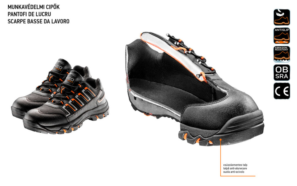NEO Munkavédelmi cipő elengedhetetlen védőeszköz a munkavégzéshez. A felsőrész lélegző anyagból készül. A gumival bevont, EVA habból készülő csúszásgátló talp kimagaslóan komfortos és hatékonyan csillapítja a rázkódást, garantálva a biztonságot és a kényelmet. A cipő belső részének puha kialakítása kényelmes viseletet biztosít.