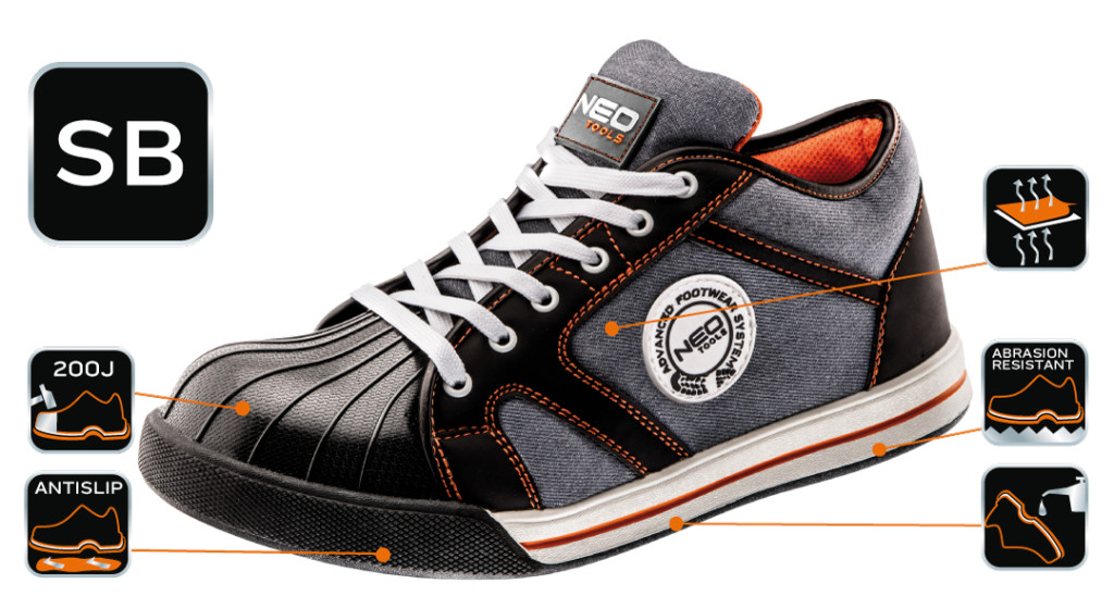 A NEO munkavédelmi félcipő. Csúszásmentesített talpa gumival borított EVA hab, ami hozzájárul a biztonsághoz és a viselési komforthoz. Gumírozott orrrésze hatékony védelmet biztosít a mechanikai behatások ellen, a fém orrmerevítő pedig véd a sérülések ellen. A CE jelölés a biztonság garanciája, bizonyítja, hogy a termék teljesít minden európai uniós követelményt. A NEO márka a professzionális igényeket is kielégíti.