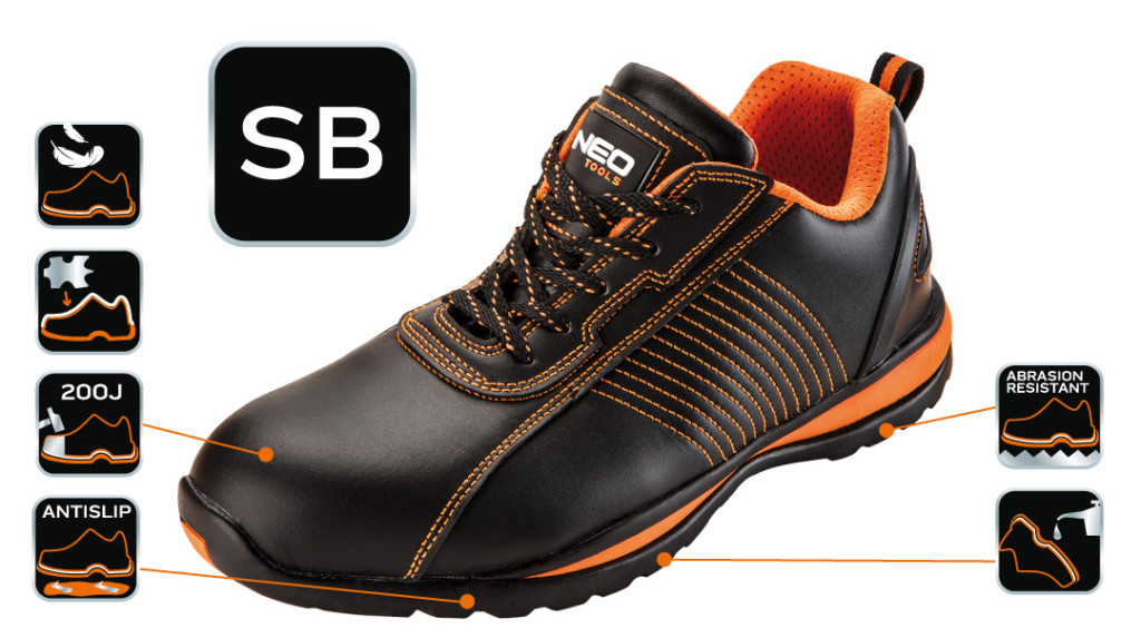 NEO munkavédelmi félcipő. Felsőrésze könnyen ápolható bőrből készül. Csúszásmentesített talpa gumival borított EVA hab, ami kiváló kényelmet és hatékony rezgéscsillapítással járul hozzá a biztonsághoz és a viselési komforthoz. A megerősített sarok és az acél orrmerevítő véd a sérülések ellen. A lábbeli belső részének puha kialakításának köszönhetően kényelmes munkavégzést biztosít.
