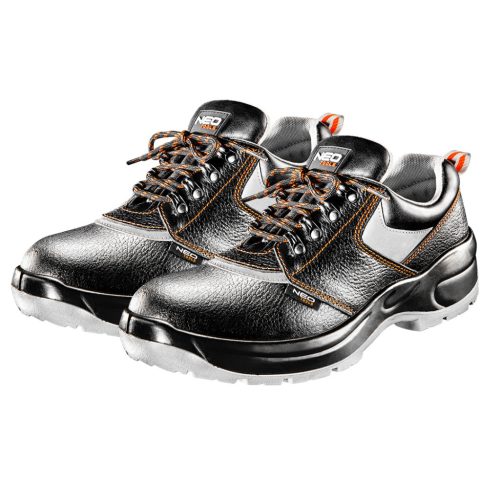 A NEO munkavédelmi cipő alapvető védőeszköz a munkavégzéshez. Felsőrésze kiváló minőségű bőrből készül, viselője láthatóságáról minden körülmények között gondoskodó fényvisszaverő betétekkel rendelkezik. A rezgéselnyelő rendszerrel ellátott csúszásmentes talp gondoskodik a kényelemről és a biztonságról. Az átszúrás ellen védő fém betét és a megerősített fém orrmerevítő véd a sérülések ellen. A lábbeli belső részének puha kikészítésének köszönhetően magas fokú a munkavégzés kényelme. A CE jelölés a biztonság garanciája, bizonyítja, hogy a termék teljesít minden európai uniós követelményt. A NEO márka a professzionális igényeket is kielégíti.