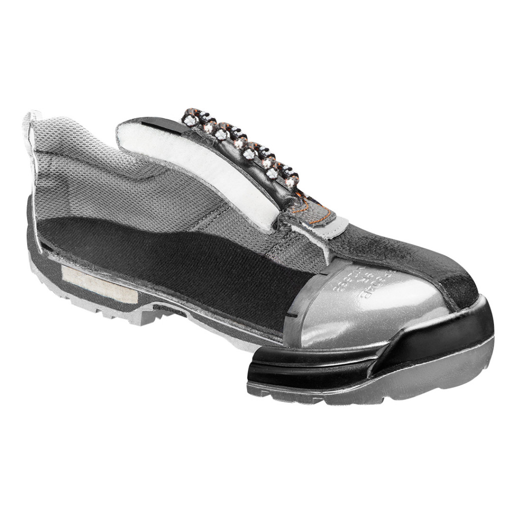 Munkacipő, bőr, csúszásmentes talp rezgéselnyelő rendszerrel, dörzs-, olaj-, benzin- és szerves oldószerálló, max. 200 J energiájú ütésnek ellenálló acél orrmerevítő, átszúrás ellen védő acél betét, antisztatikus betét, fém fűzőkarika, fényvisszaverő zóná