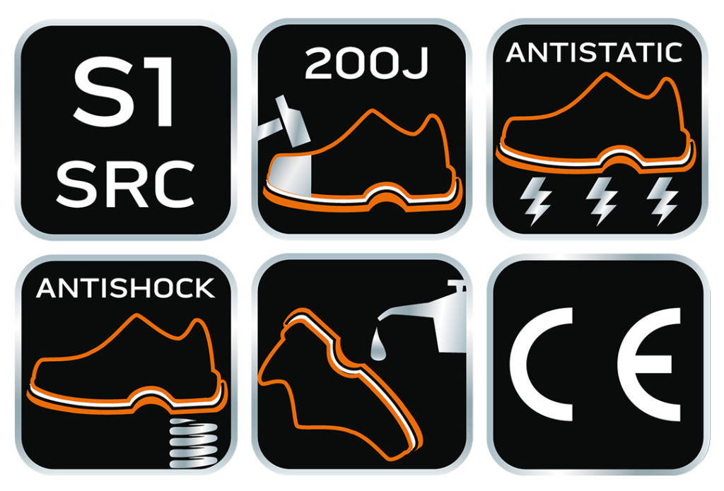 NEO bőr mukacipő, acélbetétes, S1 SRC besorolással. Hasított bőr felsőrésszel, fémhurokkal, dupla és tripla varrással a lábbeli megerősítésére. Az acél talpbetét védelmet nyújt a 200 J energiával egyenértékű ütésekkel szemben. A cipő ellenáll az olajnak, benzinnek és más szerves oldószereknek. A sarokrész energiaelnyelése megfelel az EN ISO 20345 szabvány szerinti biztonsági lábbeli besorolásnak. A cipő több méretben kapható.