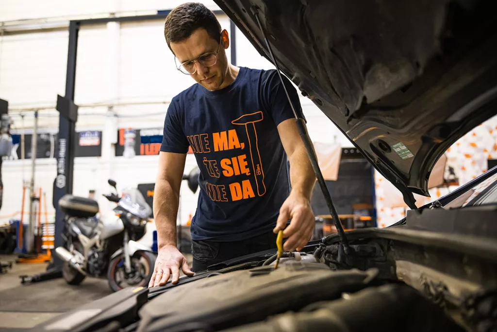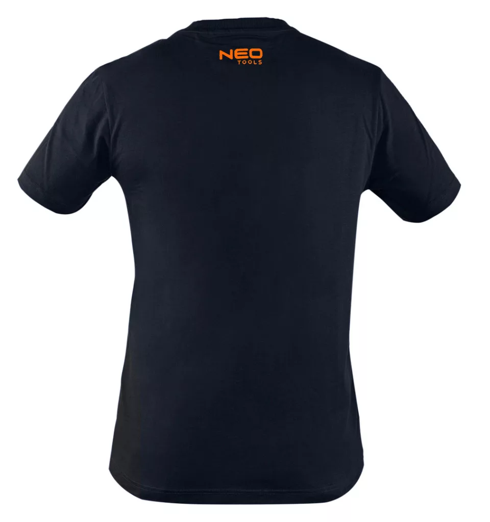NEO narancssárga grafikával ellátott munkapóló MA SIE DA felirattal. A póló sötétkék színű. Mellrészen található nagyméretű nyomtatott szlogennel. Rövid ujjú, kerek nyakkivágással. Puha elasztikus 100% pamutszövetből készült, 180 g/m2 súlyú. A márka egyedi dizájnja, teszi ezt a pólót szinte minden alkalomra tökéletes viseletté. CE tanúsítvánnyal rendelkezik, a motorozás és a barkácsolás rajongóinak ajánlott.