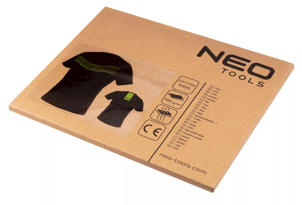 Prémium PRO munkapóló, L méret. Fekete színben, elöl neonzöld 3D nyomtatással. 100% single jersey pamutból készült, 180 g/m2 súlyú. Hátul a nyakán NEO márkajelzéssel van ellátva. A póló kerek nyakkivágással rendelkezik, a mellkason egy elasztikus dizájnnal. Egyedülálló Premium PRO kialakítású. CE tanúsítvánnyal rendelkezik. Munkahelyi és alkalmi viseletre egyaránt ajánlott. S-XXXL méretben kapható.