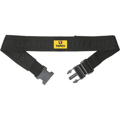 TOPEX öv szerszámtartókhoz és szegtáskákhoz. Műanyagból készült, 5 cm széles öv. Lehetővé teszi szerszámtartók, szegtáskák és szerszámakasztók rögzítését. Övhosszúság beállítást lehetővé evő csattal van felszerelve. A max. övhossz 114 cm. A TOPEX márka ezermestereknek készül.