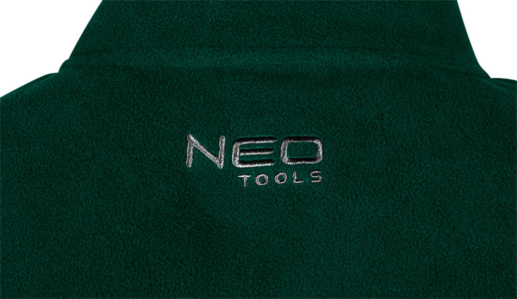 NEO Fleece polár munkadzseki,zöld színben.Kiváló minőségű fleece anyagból, 300g/m2 tömeggel és 100% poliészter anyagösszetétellel. 3 cipzáras zsebbel rendelkezik - egy mellzsebbel és két oldalsó zsebbel. A cipzáras elemek előtti kiegészítő állvédő és a hosszúkás hátrész kényelmesebbé teszi a viseletet. A pulóver állítható szegéllyel és elasztikus ujjrészekkel rendelkezik. A könnyű azonosítás érdekében névtáblával van ellátva. A NEO márkájú pulóver CE tanúsítvánnyal rendelkezik. Szakembereknek és barkácsolóknak egyaránt ajánlott a munkahelyen és azon kívül történő használatra.