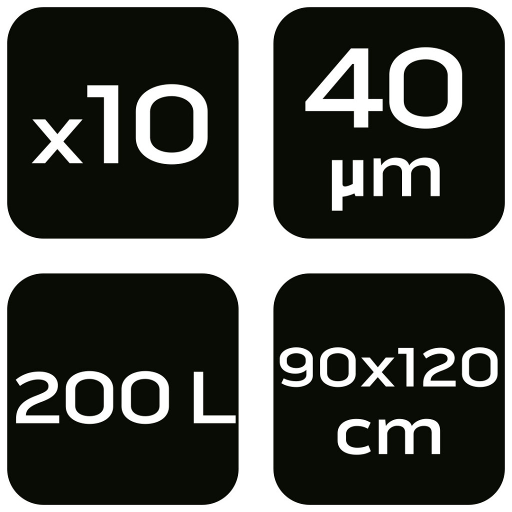 NEO 15-995 Szemeteszsák 200l, 90x120cm, barna,erősített , vastagság:40mic, 10db. Tekercsben, dupla aljú lezárással. Tartós LDPE anyagból készülnek. Jól használható fű, falevelek, kerti, konyhai és egyéb hulladékok gyűjtőzsákjaként. A NEO TOOLS hulladékgyűjtő zsákok garantálják a tartósságot.
