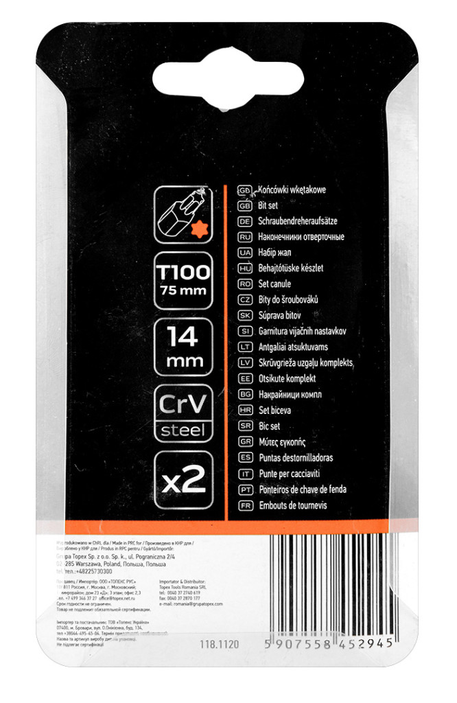 Torx bit, 3/8", T100x75mm, CRV, 2db