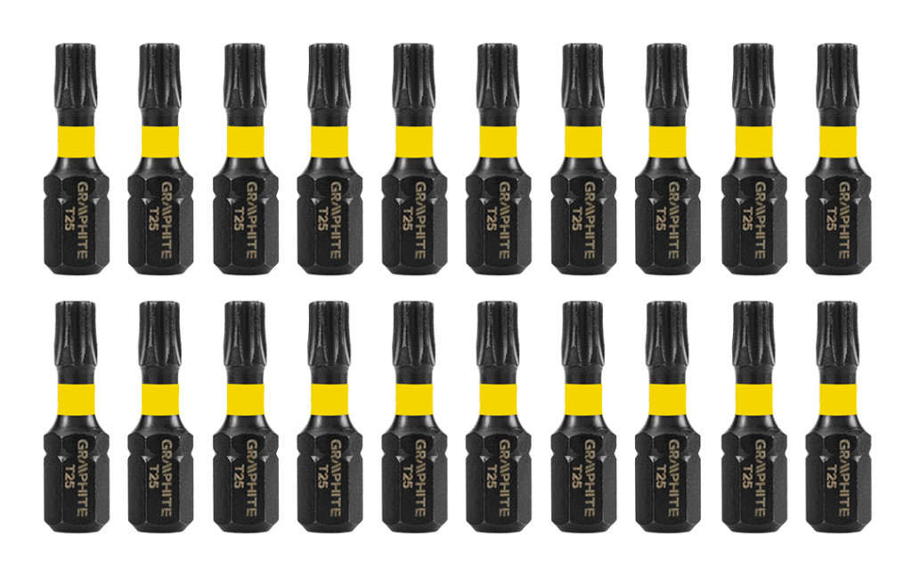 GRAPHITE bit ütvecsavarozáshoz. Nagy teljesítményű bitek, amelyeket nagy nyomatékú csavarbehajtóval vagy ütvecsavarozóval történő munkavégzéshez terveztek. Kiváló minőségű S2 acélból készülnek, amelyet fokozott rugalmasság és a mechanikai sérülésekkel szembeni ellenállás jellemez. A nagy nyomaték hatására a torziós zóna csökkenti az erőátadást, ami ellenállóbbá teszi a töréssel szemben, és élettartama lényegesen hosszabb lesz. A hegy csúcspontja tökéletes illeszkedést garantál a csavarfejekben. A GRAPHITE márka a professzionális igényeket kielégítő elektromos szerszámok és tartozékok széles választékát kínálja.