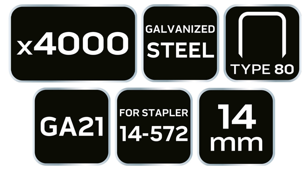 Tűzőkapocs, horganyzott, TYP80, pneumatikus tűzőgéphez 14-572-höz, GA21, 14mm, 4000db