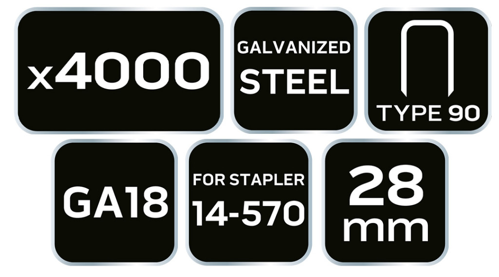 Tűzőkapocs, horganyzott, TYP90, pneumatikus tűzőgéphez 14-570-hez, GA18, 28mm, 4000db