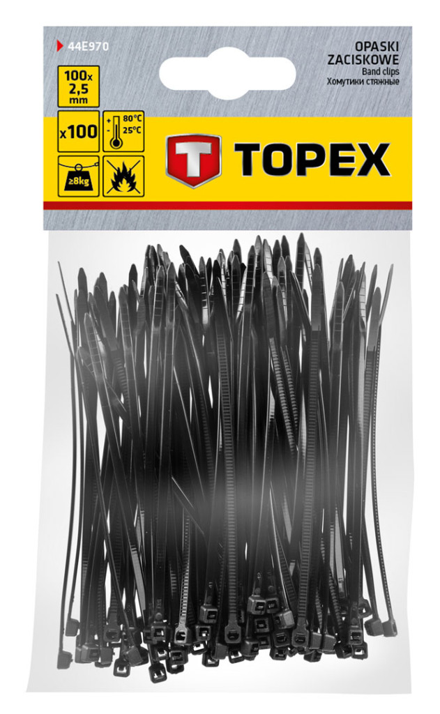 A Topex kábelkötegelő (cikkszám: 44E970) széles körben felhasználásra kerül kábelek, vezetékek összefogására, kötegelésére otthon, a kocsiban, a munkahelyen, stb. A TOPEX márka ezermestereknek készül.