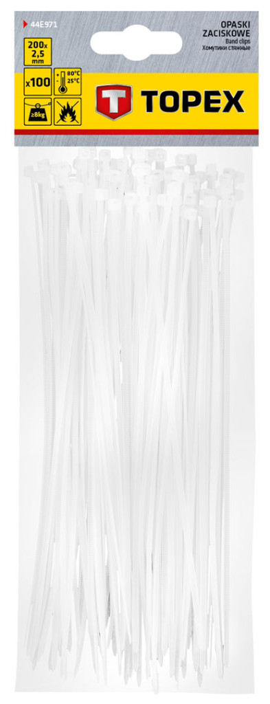 A Topex kábelkötegelő (cikkszám: 44E971) széles körben felhasználásra kerül kábelek, vezetékek összefogására, kötegelésére otthon, a kocsiban, a munkahelyen, stb. A TOPEX márka ezermestereknek készül.