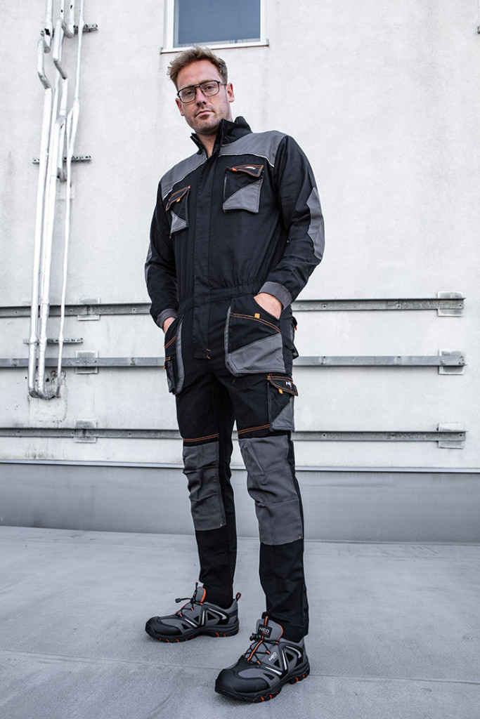 A HD Slim NEO overall munkaruha professzionális és otthoni használatra szánt, bármilyen munkához alkalmas, kényelmes ruhadarab. Az overall elasztánnal kombinált anyagból készült, így jól simul a testhez, és nem korlátozza a mozgást. Tökéletes példája a slim típusú fazonnak, amely jól simul a testhez és kihangsúlyozza az alakot., A különféle szerszámok kényelmes elhelyezését szolgálják az overallon lévő tágas, multifunkciós zsebek. A kopásnak leginkább kitett helyeket oxford szövettel erősítették meg. Az overall cipzárját hajtóka takarja, így szélálló is. A magas állógallér jól védi a nyakat. Az ujjak rugalmas mandzsettában végződnek, így jól hozzátapadnak a csuklóhoz. A könyök és a térd a kényelmes viselet érdekében profilozottak. A térden térdvédők számára kialakított zsebek vannak..