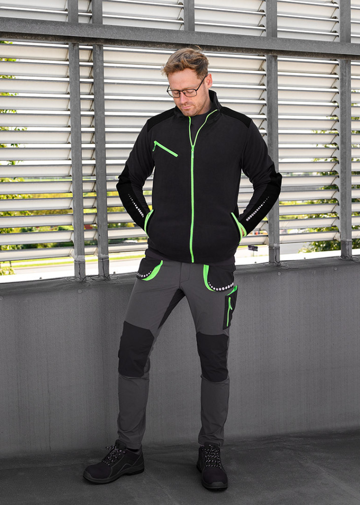 Munkásnadrág Premium, 4 irányban önbeálló anyag, fekete-zöld, XXL