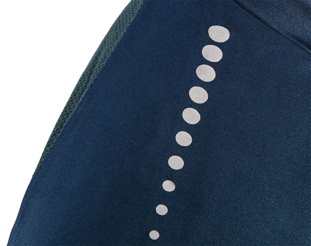 Munkapóló, PREMIUM, L méret, 92% poliészter, 8% elasztán, 220 g/m2, SPANDEX, sűrű szövésű kötött rugalmas anyagból, légáramlást segítő hálópanel a háton, felvételt segítő betét a gallérban, fényvisszaverő nyomat az ujjakon, egyedi kialakítás, CE-tanúsítvá
