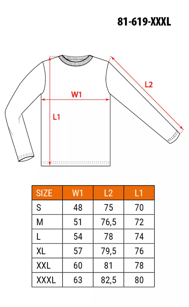Munkapóló, PREMIUM, hosszú ujjú, XXXL méret, 100% pamut, 180 g/m2, neon színű háromdimenziós gumi nyomat, egyedi kialakítás, CE tanúsítvány, megfelelés az EN ISO 13688: 2013 szabványnak