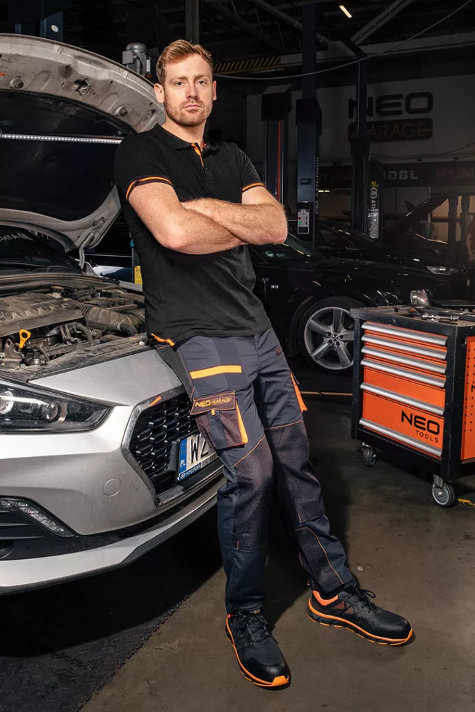 NEO pique galléros munkapóló, saját tervezésű, a Neo Garage termékcsalád része. A rövid ujjat, a gallért és az oldalsó hasítékokat kontrasztos szalaggal szegélyezik. A póló 100% pamutból készült, 195 g/m2. Elegáns választás a mindennapi viselethez. CE tanúsítvánnyal rendelkezik és EN ISO 13688:2013 szabványnak megfelelő.