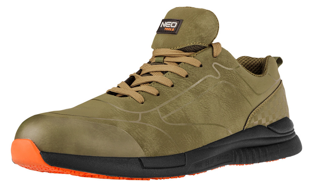 Az NEO TOOLS O2 SR FO munkacipő (modell: 82-741-46) kiemelkedő csúszásgátló tulajdonságokkal rendelkezik, ideális választás munkavégzéshez. Mikroszálas, vízlepergető felsőrésszel és kötött hálós béléssel kényelmet biztosít, PU/gumi talppal és HI-POLY habszivacs talpbetéttel. SLS bevonatú kerámia és glicerinnel bevont acél talajon is kiváló csúszásmentességet nyújt. A zárt sarokrész és az energiaelnyelő tulajdonságok növelik a biztonságot és a komfortot, elektrosztatikus ellenállással és vízállósággal egyaránt rendelkezik. Ellenáll az olajoknak, benzinnel és szerves oldószerekkel szemben. CE tanúsítvánnyal igazolt minőség.